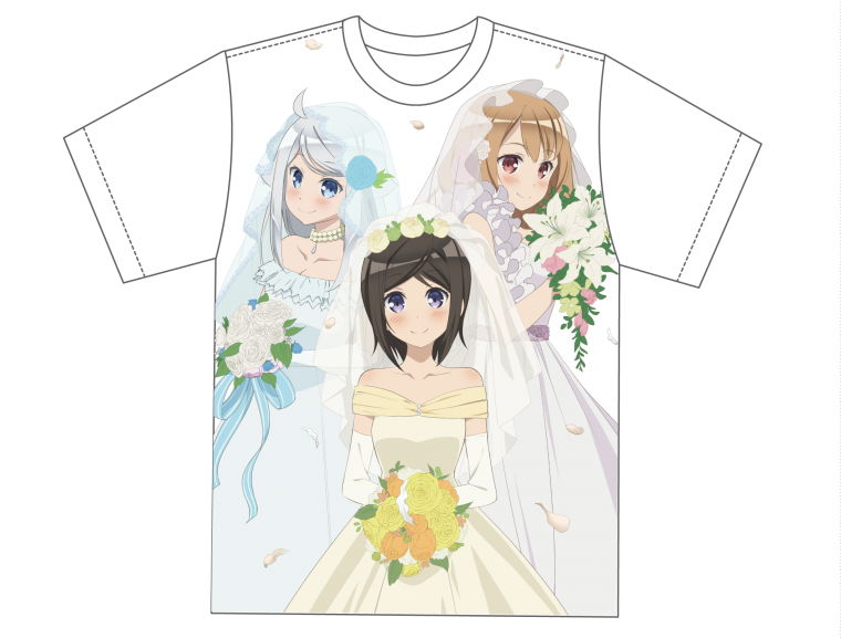 制作会社ならではのアニメ原画集や、那由多、京、千尋の可憐なウェディング姿が描かれたTシャツのほか、