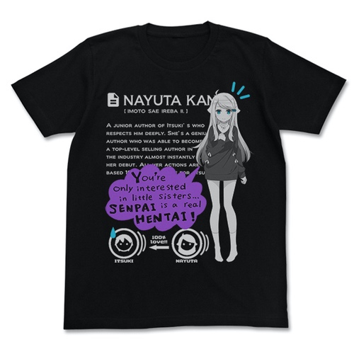 可児那由多 Tシャツ 2018年2月下旬発売予定 価格:2,900円(税抜き) サイズ:S/M/L/XL 素材:綿100% 色:BLACK 発売元:二次元コスパ 妹にしか興味がないなんて先輩は本当に変態さんですね http://nijigencospa.com/